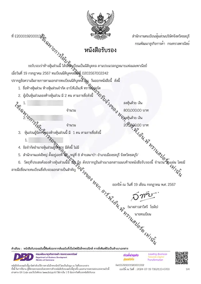 - ทะเบียนนิติบุคคลเลขที่ : 0203567002242